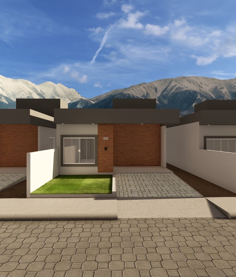 Cada unidade possuí uma área construída de 68,03m² com dois quartos, sendo uma suíte.