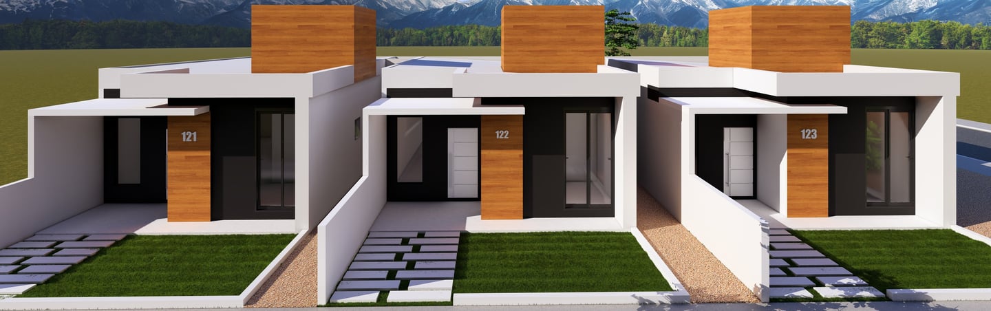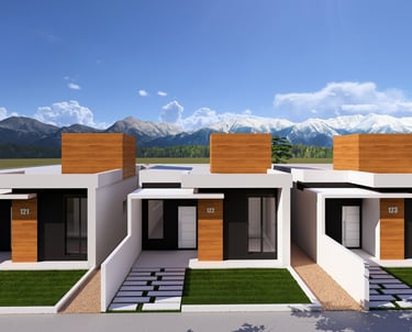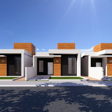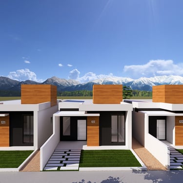 Cada unidade possuí uma área construída de 80,60 m² com dois quartos, sendo uma suíte.