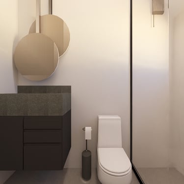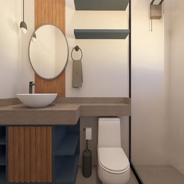 Nichos embutidos nos banheiros.